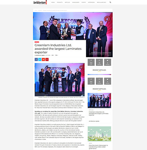 Greenlam Industries Ltd. awarded the largest Laminates exporter
